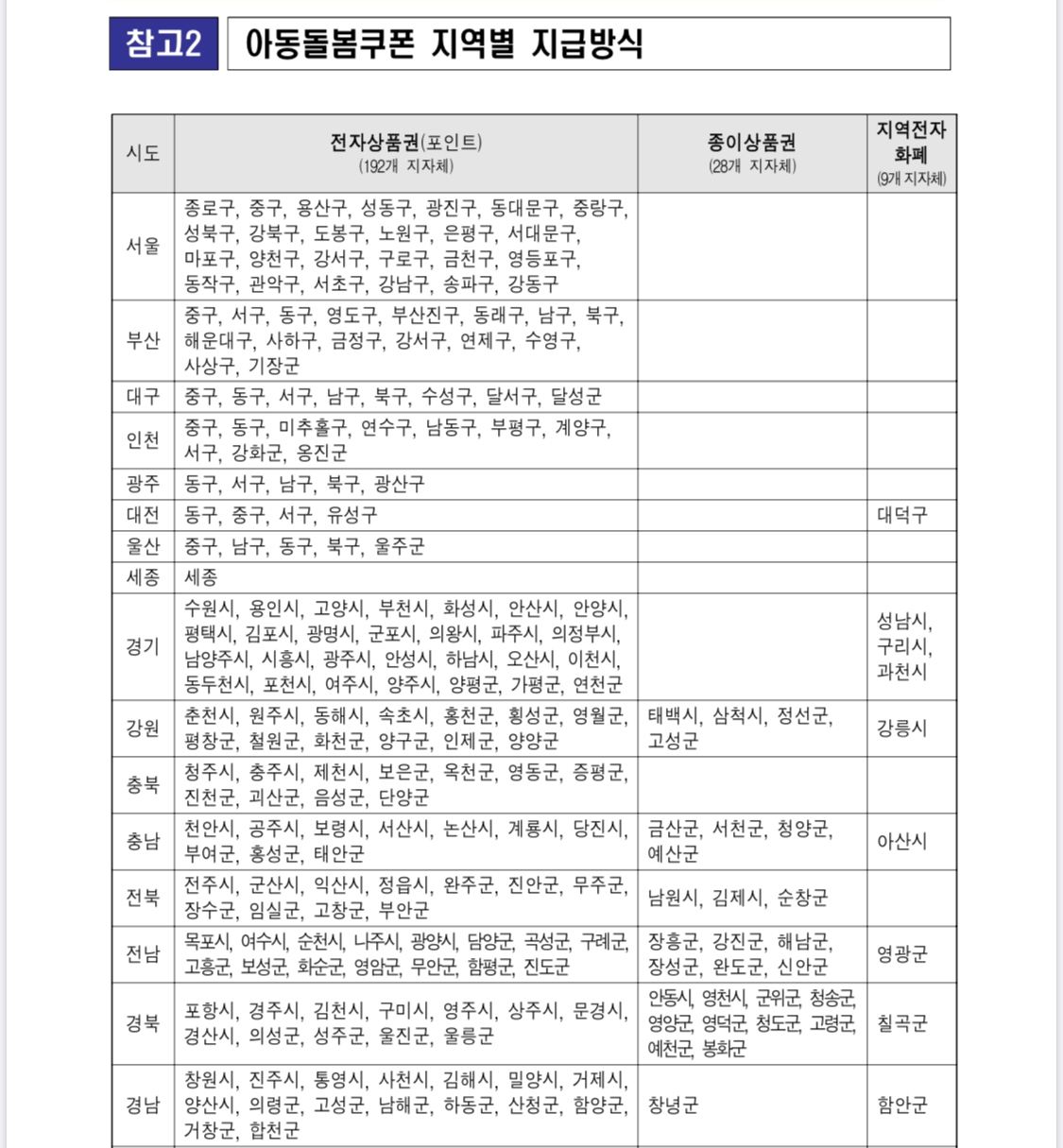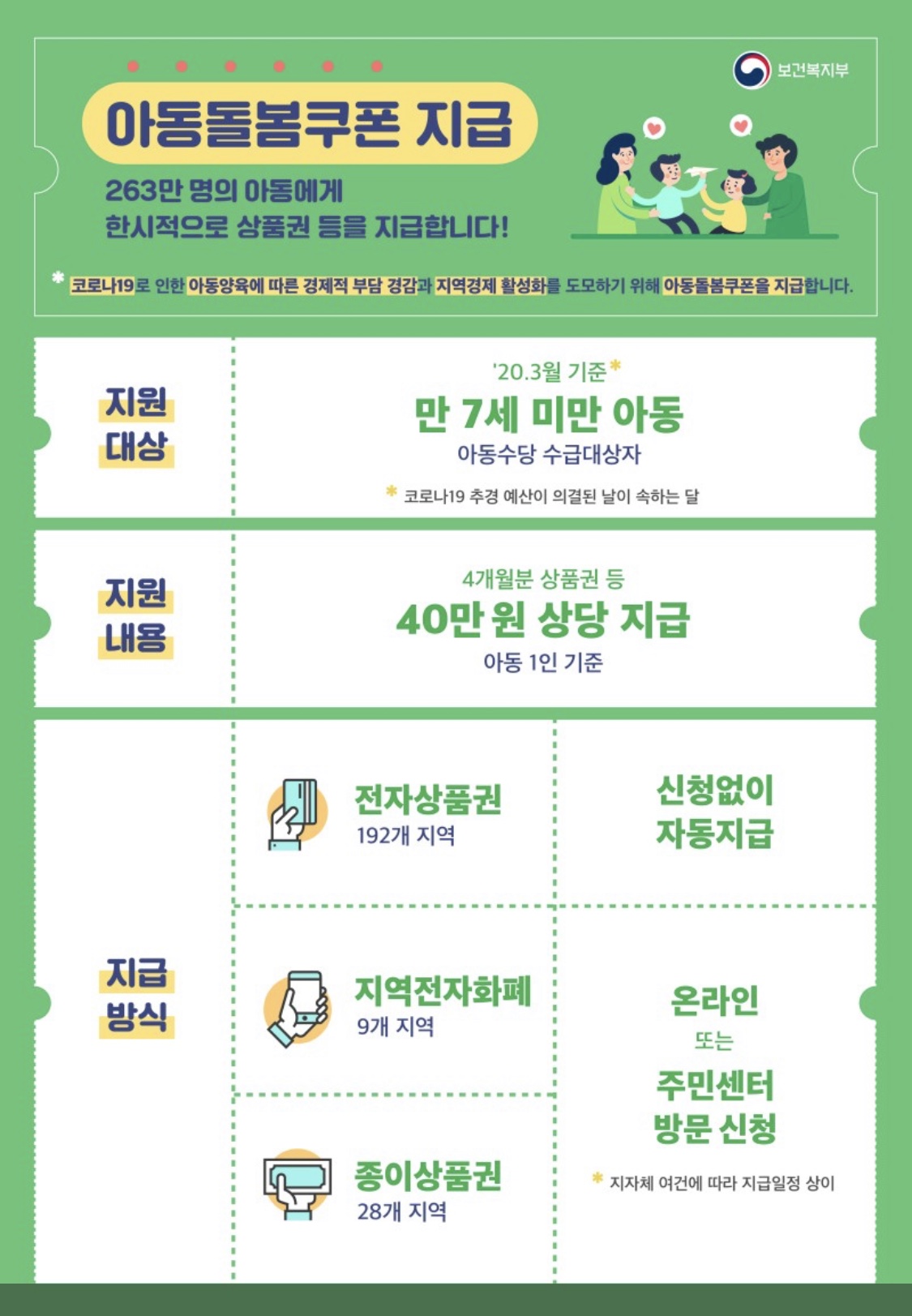 [공유] 코로나 19 극복 위해 아동양육 및 지역경제 활성화를 위한 “아동돌봄쿠폰” 지급 및 지역별 지급방식