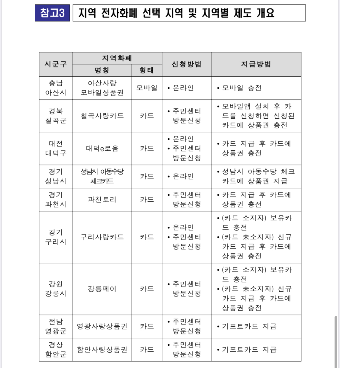 지역별 지급방식과 내용인데요~ 정확한건 각 지자체별 읍면동사무소에 문의하는게 좋을거 같네요^^