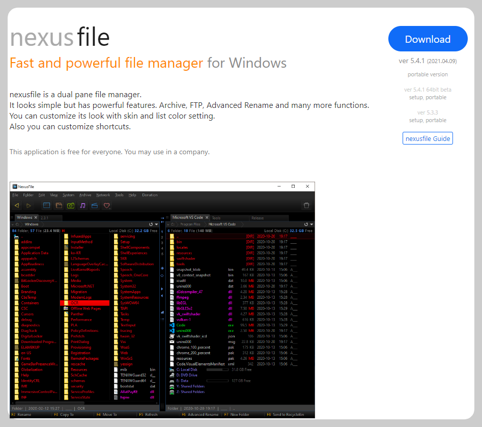 Windows용 빠르고 강력한 파일 관리자를 할수 있는 무료 프로그램입니다.