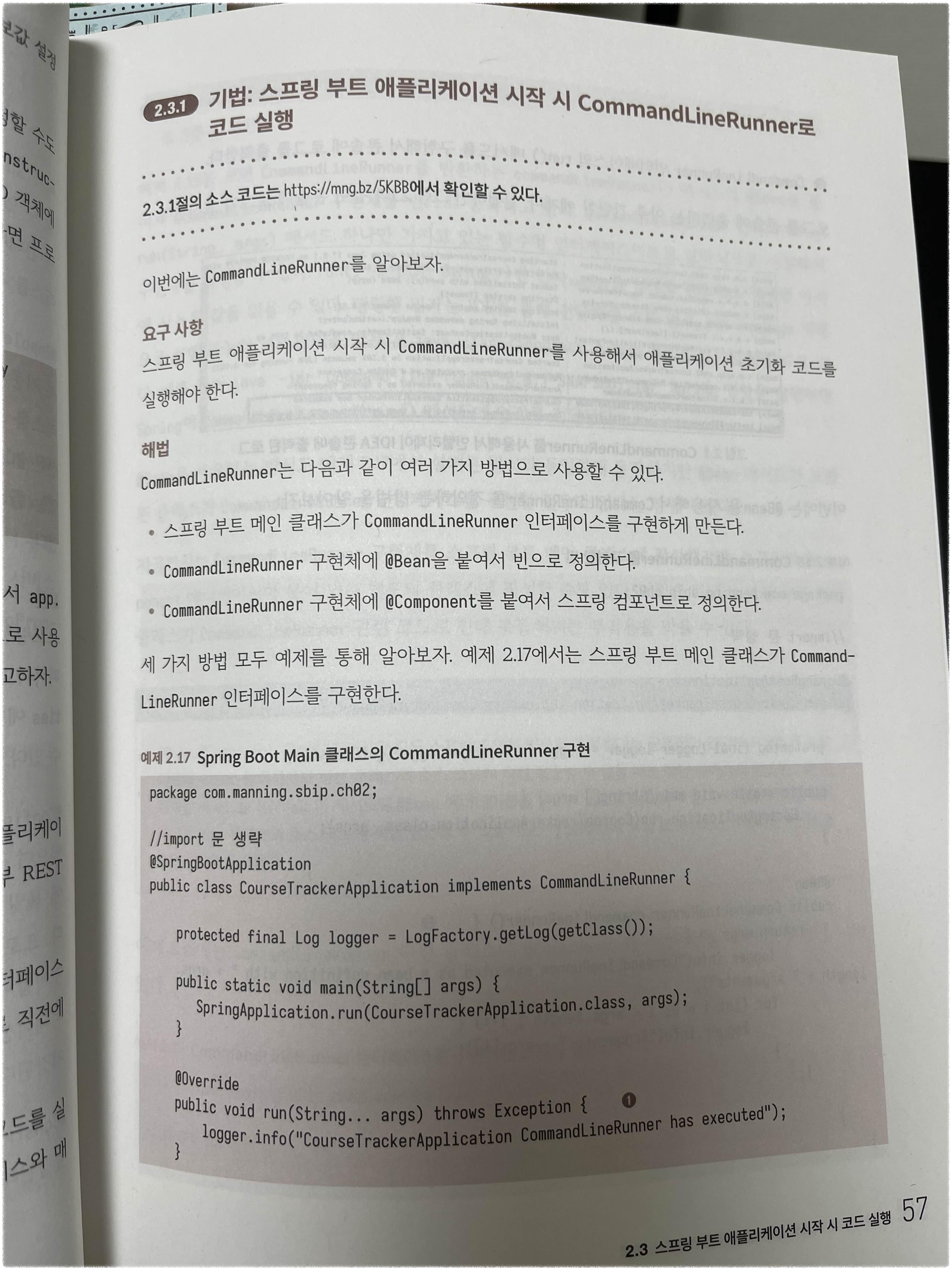 __2.3.1 기법: 스프링 부트 애플리케이션 시작 시 CommandLineRunner로 코드 실행 57